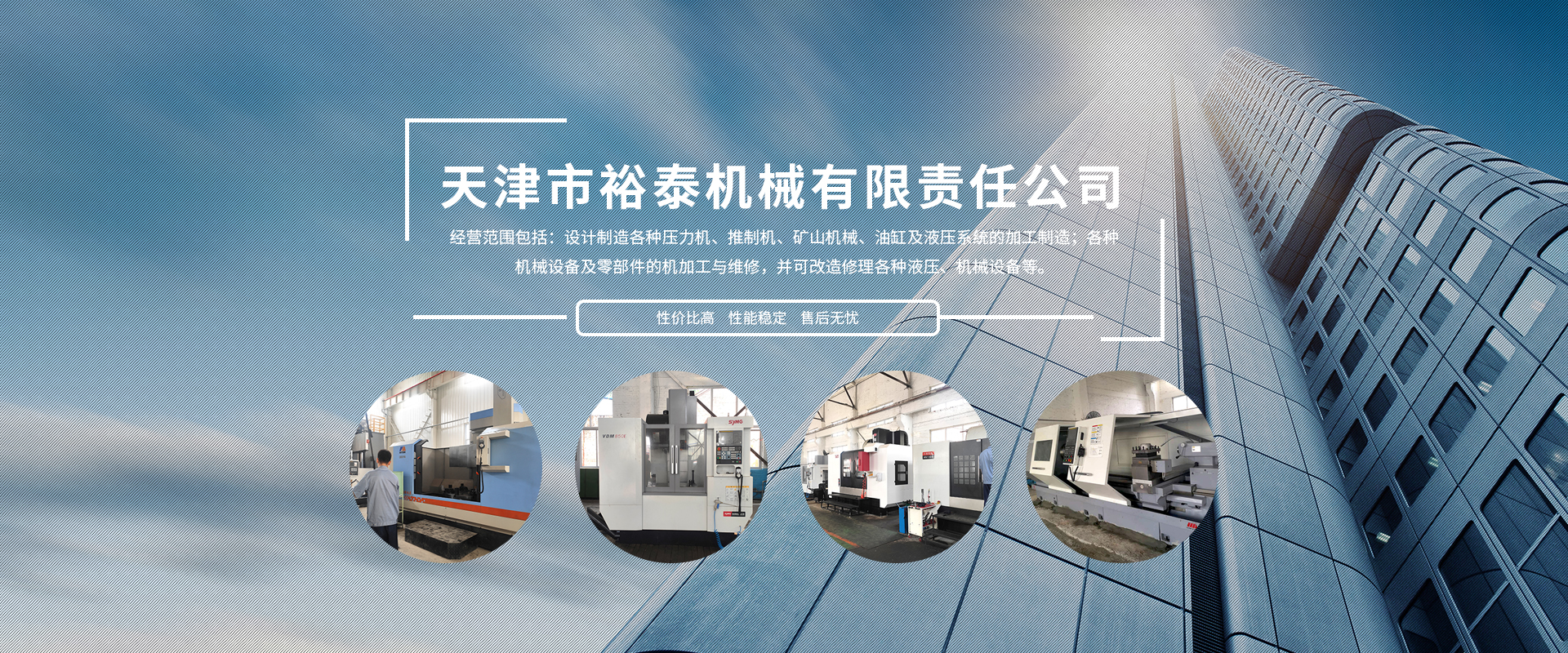 天津市裕泰機(jī)械有限責(zé)任公司成立于1998年,多次被區(qū)、鎮(zhèn)政府評(píng)為文明企業(yè),公司占地面積7500平方米,四個(gè)生產(chǎn)車間30多臺(tái)配套生產(chǎn)設(shè)備,經(jīng)營(yíng)范圍包括:設(shè)計(jì)制造各種壓力機(jī)、推制機(jī)、礦山機(jī)械、油缸及液壓系統(tǒng)的加工制造;各種機(jī)械設(shè)備及零部件的機(jī)加工與維修,并可改造修理各種液壓、機(jī)械設(shè)備等。經(jīng)過(guò)不斷的努力創(chuàng)新我公司成為中國(guó)第一重型機(jī)械廠、第二重型機(jī)械廠、上海重型機(jī)械廠、首鋼、鞍鋼、南鋼、北京冶金自動(dòng)化設(shè)計(jì)院、北京電力設(shè)備總公司等多家公司的加工基地,經(jīng)合作我們產(chǎn)品也銷往德國(guó)、意大利、美國(guó)、日本、印尼等國(guó)家和地區(qū),并已在一些國(guó)家重點(diǎn)項(xiàng)目中使用。